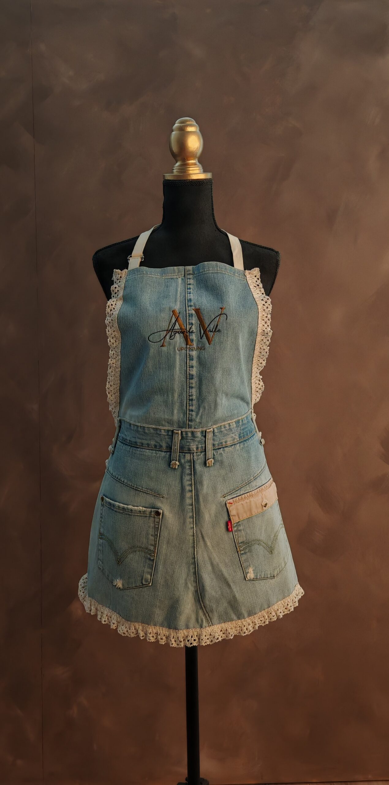 Nuestro delantal “Levis” es una pieza artística y única que combina historia, memoria y sostenibilidad.