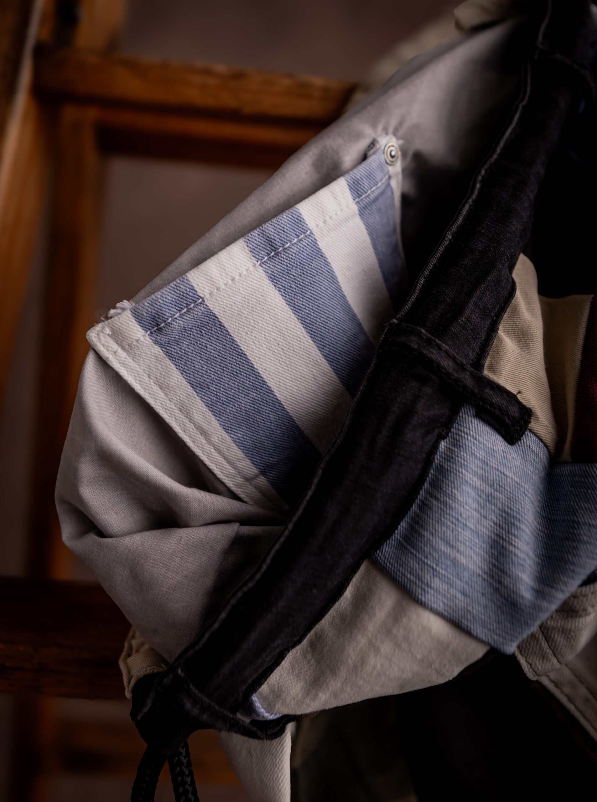 Confeccionada con tejido vaquero recuperado de jeans descartados, cada hilo revela una historia de transformación, de valor rescatado del olvido, con respeto y máximo cuidado.