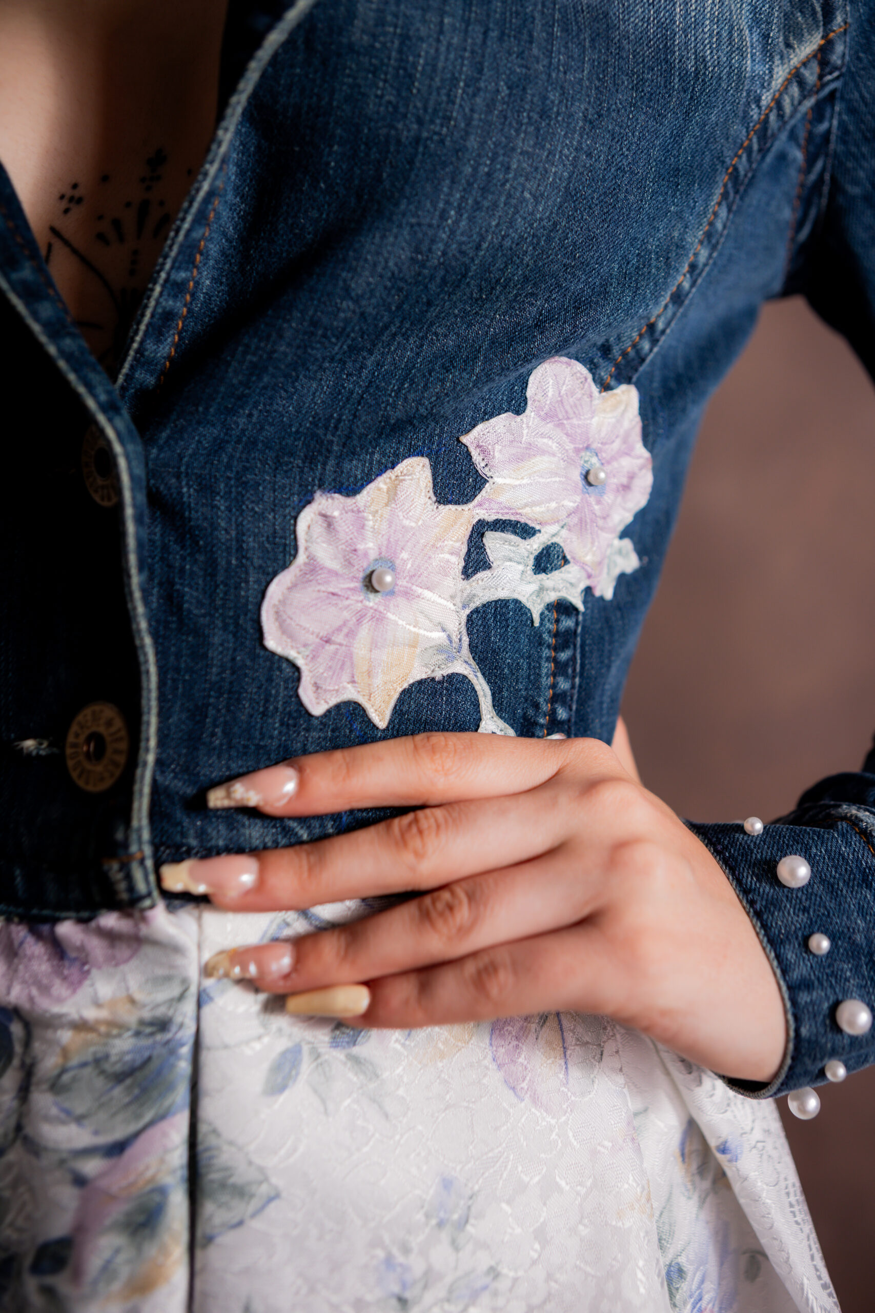 En un acto de inspiración y respeto por su historia, se une esa reliquia, con una cazadora denim olvidada, también con décadas de vida, que había sido testigo de aventuras y momentos de rebeldía. Juntas, esas piezas aparentemente opuestas comenzaron a tejer una nueva historia, fusionando pasado y presente en una creación única.
